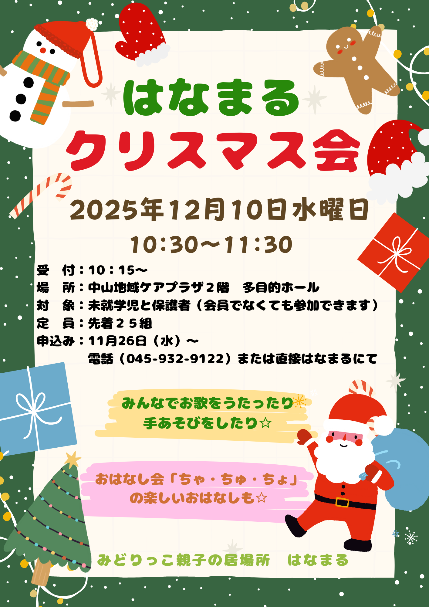 はなまるは未就学児(おもに0~3歳)とその保護者が、いつでも気軽に遊べる場所です。